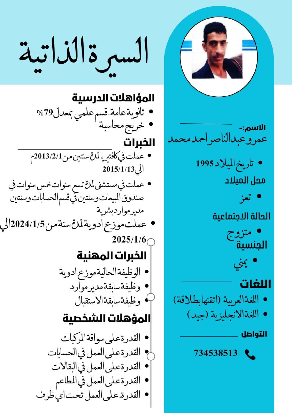 أرغب في أي عمل محاسب أو سائق أو محل أو بوفيه أو مطعم المهم أن اعمل