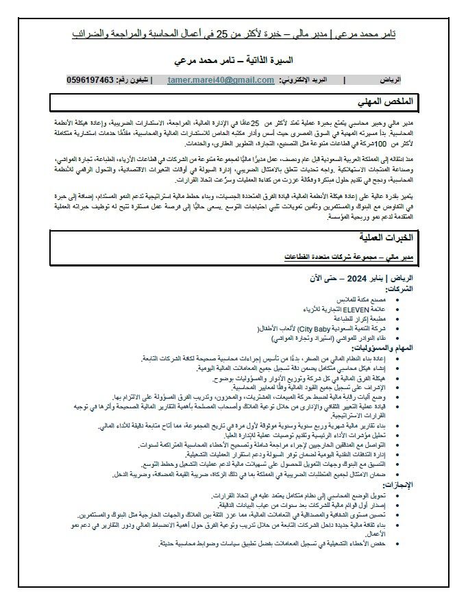 مدير مالي خبرة في مجالات متنوعة (تجارية - صناعية - خدمية - مقاولات - وتطوير عقاري) ابحث عن دوام كامل أو جزئي وهذه بعض الخبرات والمهام التي أجيدها اعداد وإدارة القوائم والتقارير المالية وفق المعايير. وضع وتنفيذ الخطط والاجراءات المالية والرقابية. اعداد الميزانيات والتوقعات المالية ومتابعة الأداء الفعلي. إدارة التدفقات النقدية والحسابات البنكية وتحليل السيولة. المساهمة في القرارات الاستراتيجية