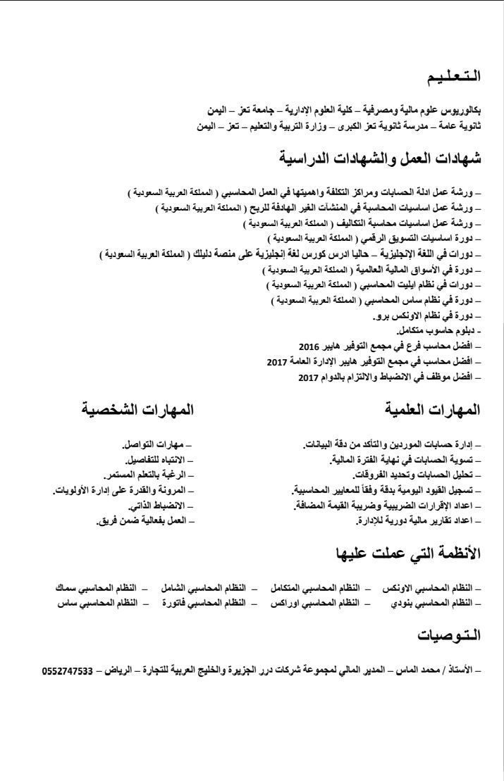محاسب مالي بخبرة 10 سنوات في إدارة الحسابات المالية وتحليل البيانات أستطيع اكمال جميع العمليات المحاسبية بدقة وسرعة، وابحث عن فرصة عمل في شركة رائدة لتطوير مهاراتي وتحقيق الأهداف المالية