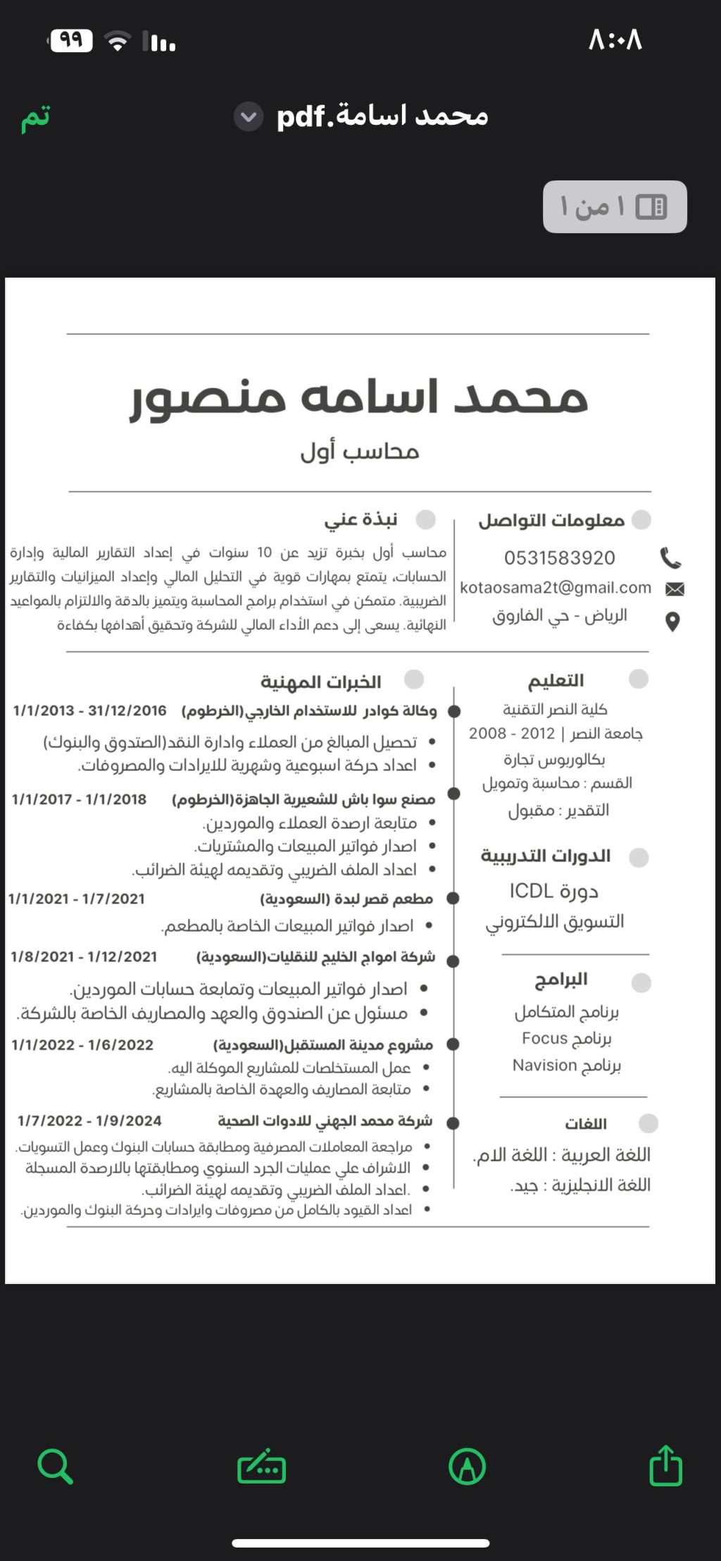 محاسب سوداني الجنسية متواجد في الرياض خبرة أكثر من خمسه سنوات في السعودية ابحث عن وظيفة بدوام كامل