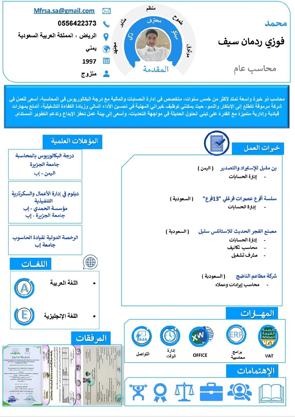 محاسب عام ابحث عن عمل بدوام جزئي في الرياض، أجيد العمل على البرامج المحاسبية ERB وملم بكافة العمليات المحسابية "اعداد القيود اليومية ومتابعة التدفقات النقدية الداخلة والخارجة والإقفالات الشهرية ورفع الاقرارات الضريبية وحتى الحسابات الختامية والإقفالات السنوية