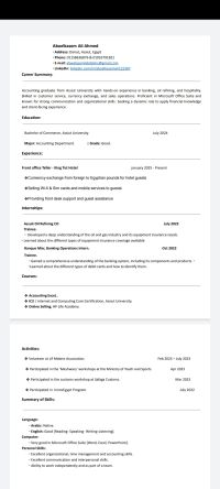 محاسب خزينة خبرة 1 سنة التعامل مع النقدية وتغيير العملات الأجنبية للنزلاء بالفندق وتوجية القيود اليومية ومتابعة الايرادات من جميع الخدمات