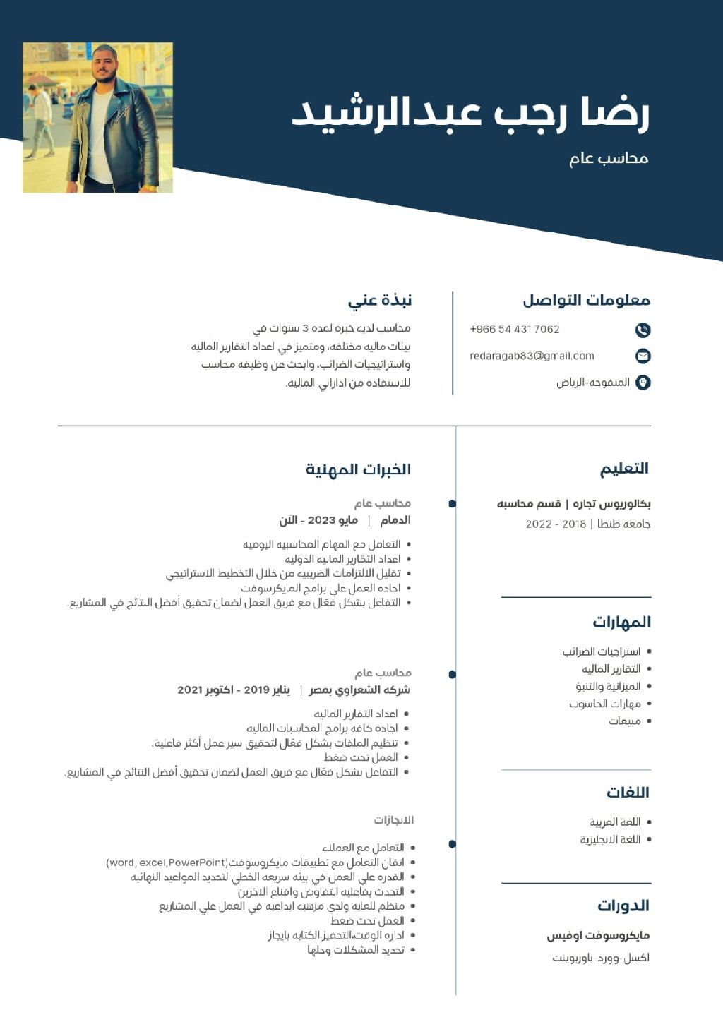 للتواصل محاسب في الرياض جاهز للعمل أقامه سارية رخصة سارية خبرة 3 سنين شركة مقاولات وسنة شركة شحن