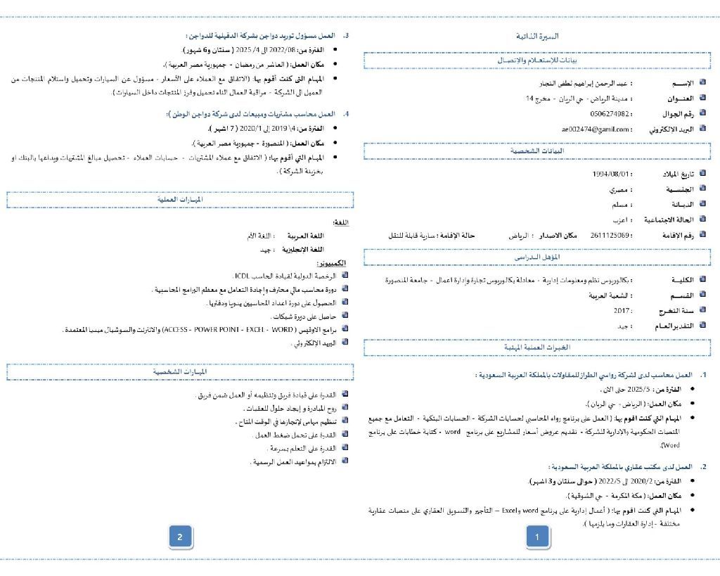 محاسب - مبيعات - مشتريات - الاشراف على فريق العمل ابحث عن فرصة عمل مناسبة بمدينة الرياض إقامة نظامية جاهزة للنقل والعمل فورا