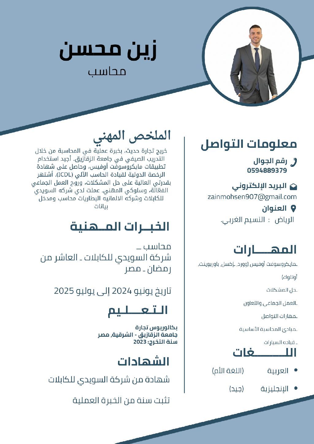 محاسب جاهز للعمل خريج تجارة، خبرة في القيود اليومية، اعداد التقارير المالية، متابعة المصروفات والايرادات، والتعامل مع برامج المحاسبة. ملتزم ودقيق وجاهز للعمل فورا