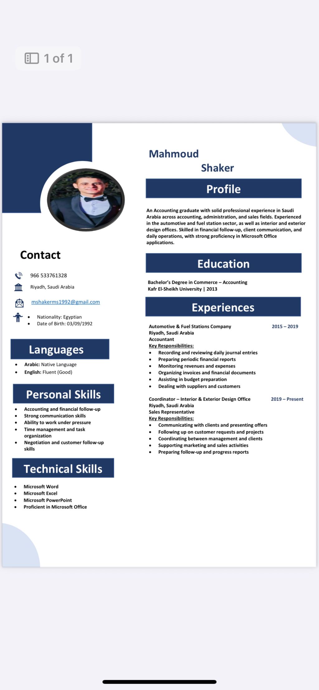 ابحث عن عمل في الرياض حاصل علي بكالوريوس تجارة عام 2013 لدي رخصة قيادة عملت محاسب لمدة 5 سنين في الرياض و6 سنوات مندوب في مكتب ديكور تصميم داخلي وخارجي في الرياض رقم تواصل
