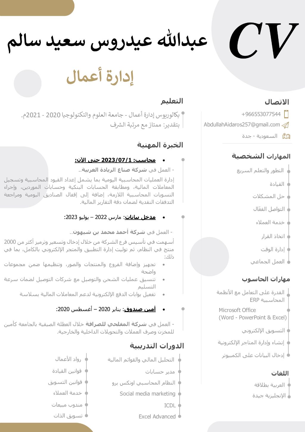 محاسب بخبرة عملية في العمليات المحاسبية اليومية واعداد التقارير المالية وتحليل البيانات. امتلك مهارات قوية في استخدام Microsoft Excel وأنظمة ERP، واعمل على تسجيل القيود اليومية ومطابقة الحسابات البنكية وإدارة الحسابات الدائنة والمدينة بدقة. أسعى الى توظيف مهاراتي التحليلية والمحاسبية لدعم اتخاذ القرارات المالية وتحسين كفاءة العمل داخل المؤسسة. ولدي مهارات في التسويق الالكتروني وإدارة منصات السوشيال ميديا