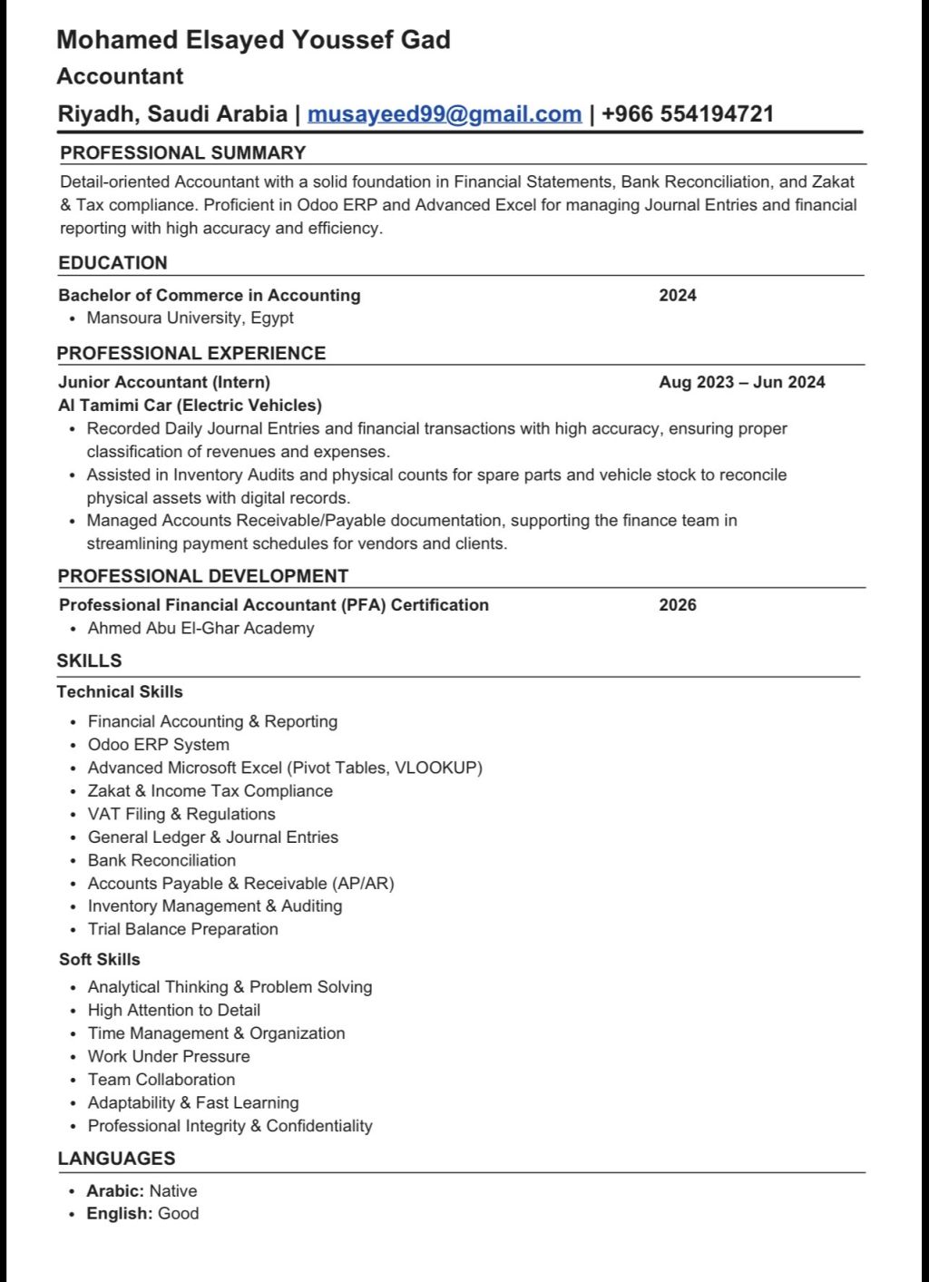 محاسب حديث تخرج لدي خلفية في المحاسبة، وأسعى لتطوير مهاراتي والمساهمة بشكل فعال داخل فريق عمل
