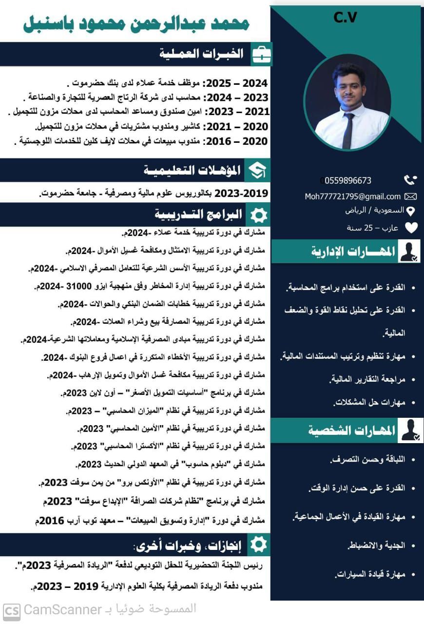 شاب يمني (حضرمي) أبلغ من العمر 25 عام، محاسب مبتدئ ابحث عن عمل في أي مجال ومستعد للعمل في أي منطقة بالمملكة العربية السعودية