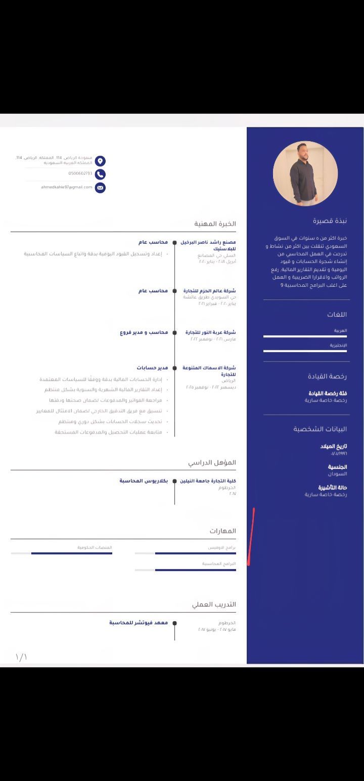 محاسب سوداني خبرة 6 سنوات في السوق السعودي العمل على جميع العمليات المحاسبية منذ قيود يومية ومتابعة حسابات العملاء والموردين والتسويات البنكية ورفع الرواتب والاقرارات الضريبية أجيد استخدام برامج أل ERB SESTEM وأيضا المنصات الحكومية ك قوى ومنصة مقيم ومدد وغيرها ابحث عن عمل