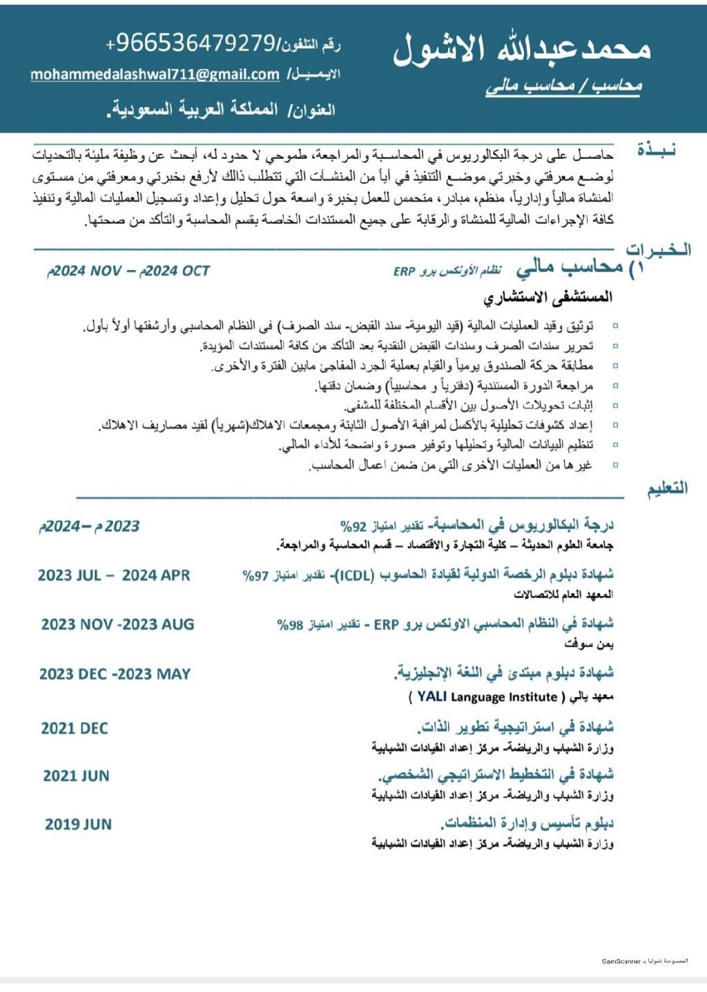 Yemeni accountant with experience in preparing financial statements, filing taxes, and accurately monitoring financial transactions. Holds a valid driver's license, residency permit, and car. Available to start immediately