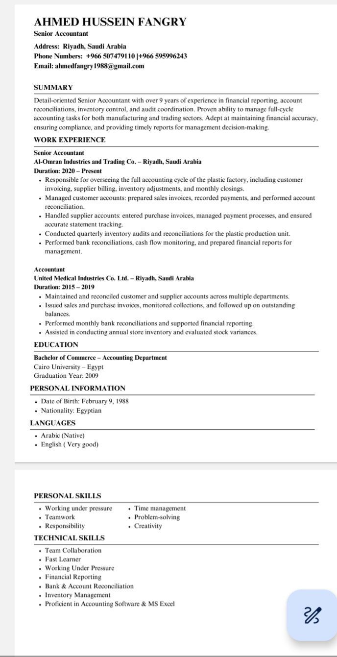 محاسب عام ابحث عن فرصة عمل مناسبة خبرة أكثر من 8 أعوام