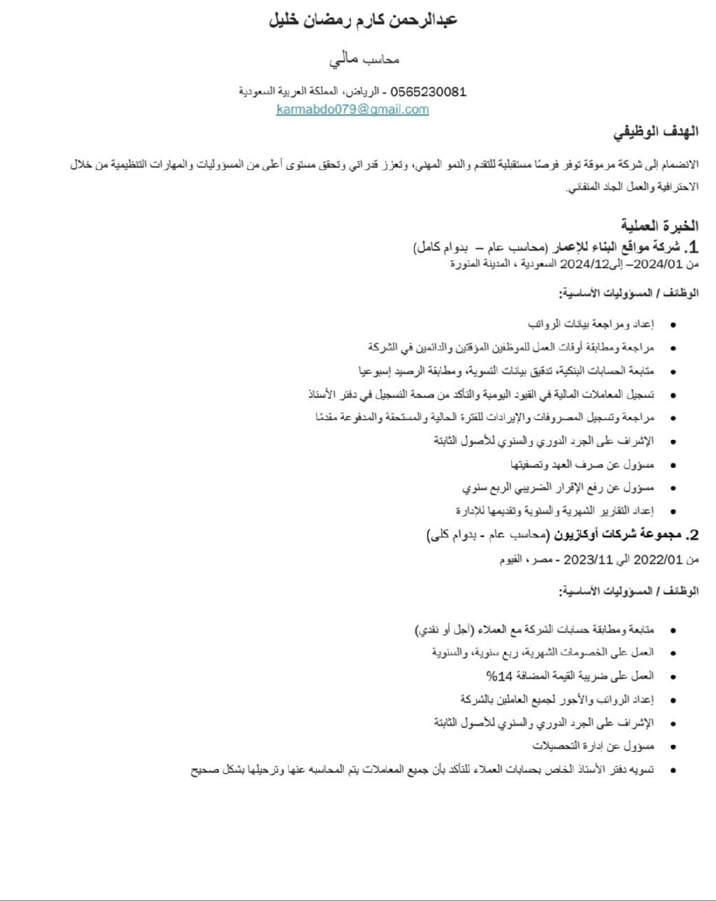 محاسب مصري إقامة سارية يجيد العمل علي برامج Erp وخبرة فالقيود المحاسبية والتعامل مع حسابات الايرادات والمصروفات ومتابعة المخزون والعهد والتسويات البنكية وتقديم الاقرارات الضريبة ومتابعة الموردين والعملاء