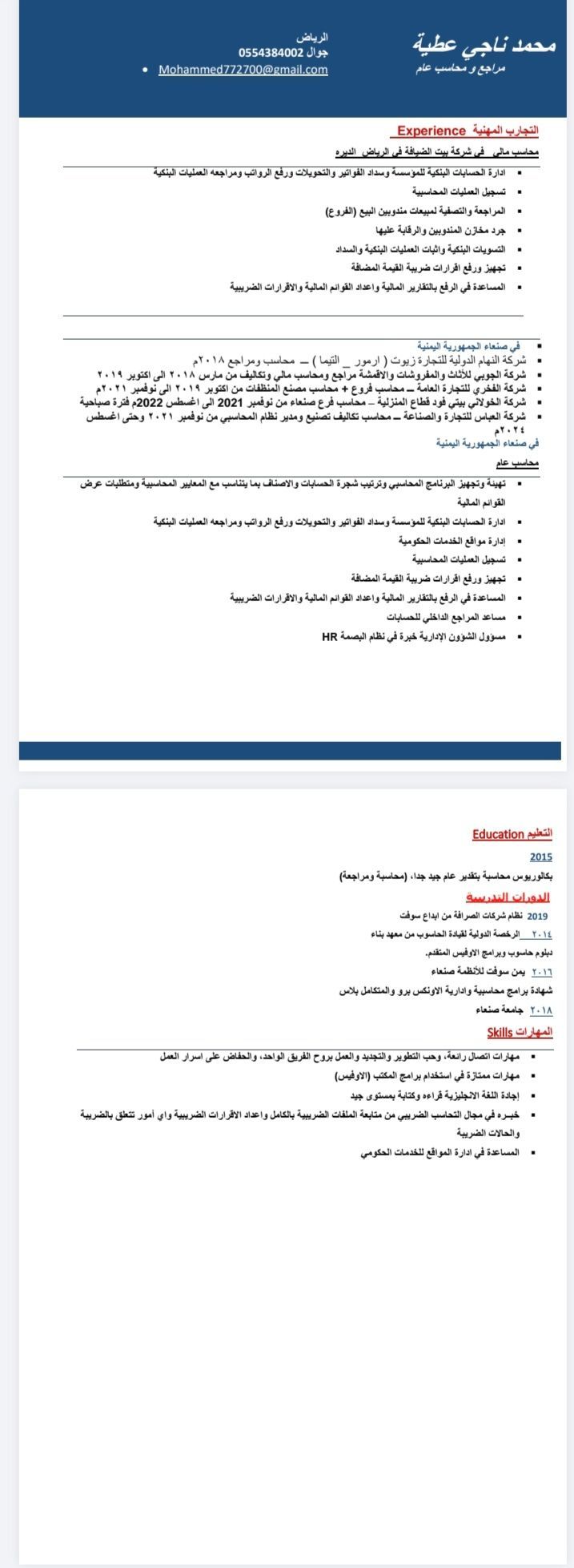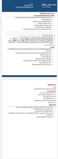 محمد ناجي عطية محاسب خبرة ثمان سنوات خبرة في الحسابات وضريبة القيمة المضافة وتجهيز مسير الرواتب ورفعه على البنك خبرة في التصنيع والتسويات الجرديات خفره في نشاط الأقمشة والموكيت والمجالس العربية خبرة في التموينات ومندوبي المبيعات خبرة في الالكترونيات خبرة تصنيع الشكولاتة والريفر متواجد في الديرة أسواق التعمير جوار المعيقليه لأي عمل جزئي