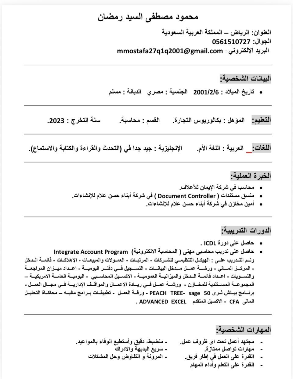 أنا شخص طموح ومجتهد، مهتم بمجال المحاسبة وأسعى لتطوير نفسي من خلال دورات مختلفة. أتطلع لبدء مسيرتي المهنية كمحاسب، وابحث عن فرصة تتوافق مع اهتماما تي وأهداف