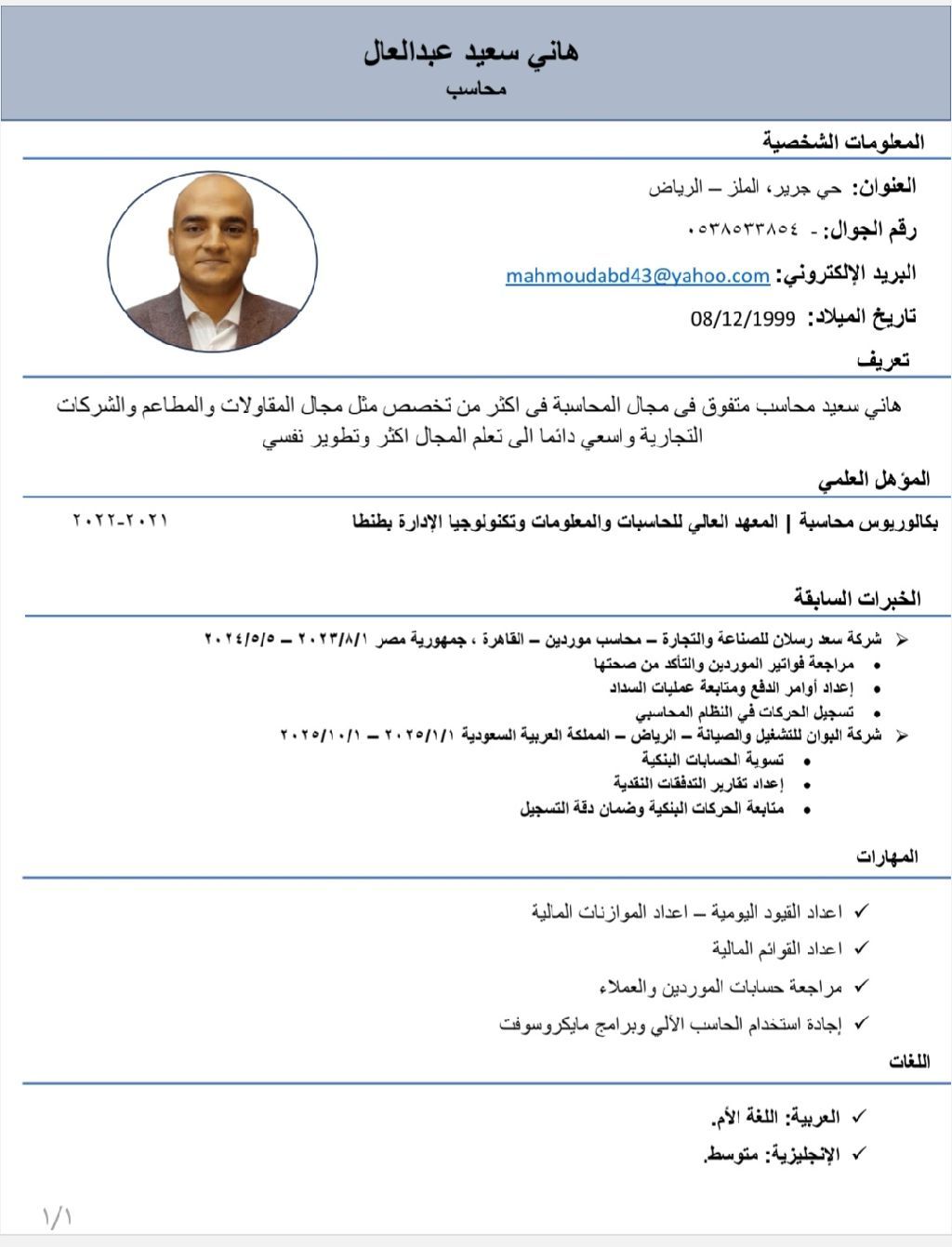 محاسب خريج دفعه 2022 أقامه سارية اجادة استخدام الأوفيس وبرنامج Erp وخاصه برنامج قيود