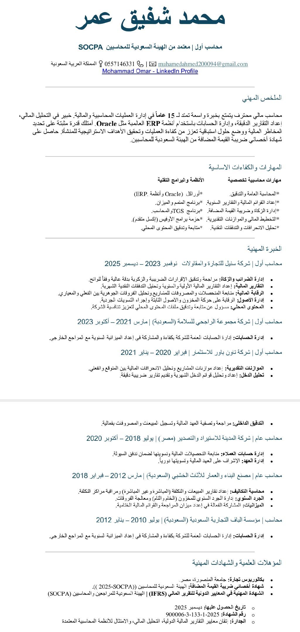 محاسب أول مصري خبرة 16 عام بالمملكة يبحث عن عمل