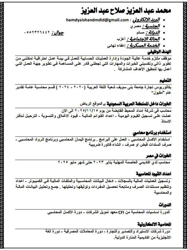 ابحث عن وظيفة محاسب خبرة في المملكة ست أشهر