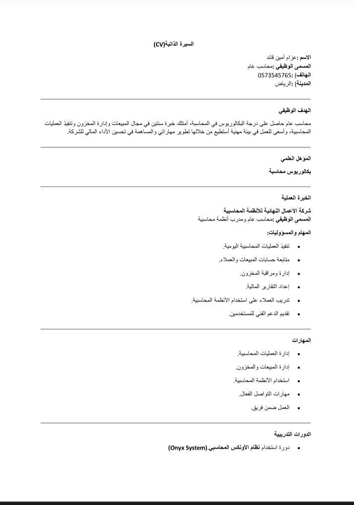 محاسب عام ذو خبرة في اعداد التقارير المالية وإدارة الحسابات، وتحليل البيانات المالية بدقة وكفاءة