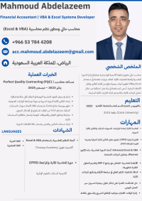 Financial Accountant & Data Analyst Experienced Financial Accountant with a strong background in financial reporting, auditing, and VAT filing. Proficient in Excel & VBA for developing automated accounting solutions. Skilled in inventory management and general ledger oversight. Based in Riyadh and ready for immediate start