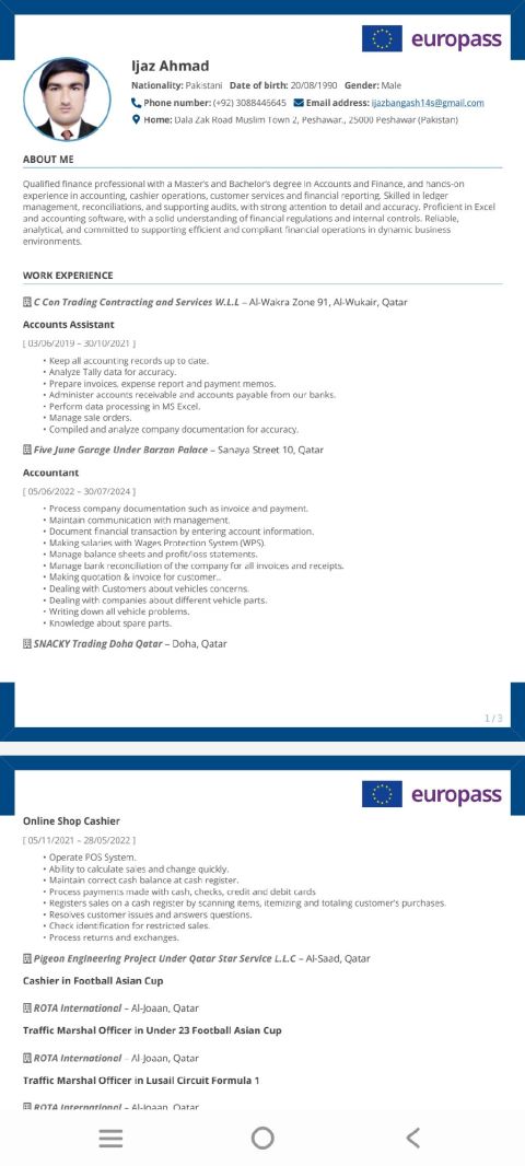 أنا محترف متمرس في مجال المحاسبة والخزينة وخدمة العملاء، امتلك خبرة واسعة في إدارة العمليات المالية والتعاملات النقدية بدقة عالية. أتميز بقدرتي على الحفاظ على سجلات مالية دقيقة وضمان سير العمل بسلاسة، مع التركيز على تقديم خدمة عملاء استثنائية. مهاراتي في التواصل والتعامل مع العملاء تمكنني من دعم فريق العمل وتحقيق الأهداف بكفاءة عالية. أتمتع بالقدرة على التكيف مع بيئات العمل الديناميكية والتعلم الس