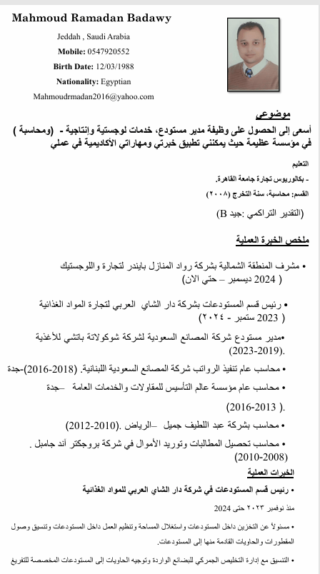 موضوعي أسعى الى الحصول على وظيفة مدير مستودع، خدمات لوجستية وإنتاجية - ومحاسبة) في مؤسسة عظيمة حيث يمكنني تطبيق خبرتي ومهاراتي الأكاديمية في عملي