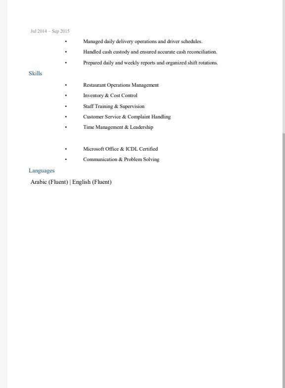 مدير مطعم يبحث عن عمل لدي خبرة 5 سنوات داخل المملكة