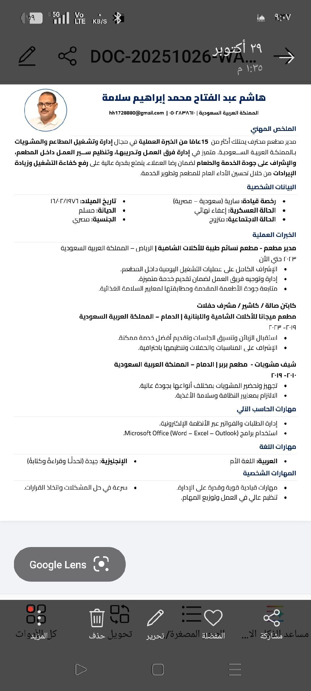 متاح مدير تشغيل خبرة متميزه في مجال المطاعم والمقاهي أكثر من 15 عاما متعدد الفروع في السعودية ومتخصص في المطاعم خبرة في رفع كفاءة العمل من خلال المبيعات والتكاليف والمخزون وتدريب العاملين على العمل وتطوير أدائها مع الحرص على تطبيق أعلى معايير الجودة وخدمة العملاء