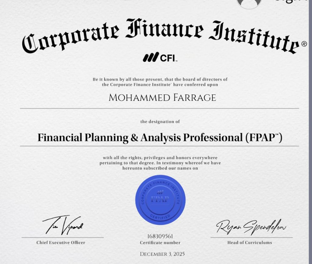 مدير مالي معتمد خبرة 15 عاما في الإدارة المالية والمحاسبية والتدقيق لشركات وأنشطة متعددة. خبرة في التخطيط المالي الاستراتيجي واعداد الميزانيات والتنبؤات والتحليل المالي والنمذجة المالية لتعزيز نمو الايرادات والكفاءة التشغيلية. خبرة في إدارة الخزينة والسيولة والتكاليف، وتحسين رأس المال العامل وتعزيز الرقابة الداخلية والحوكمة المالية وضمان الامتثال في اللوائح الضريبية السعودية وتطوير الأنظمة وفريق العمل