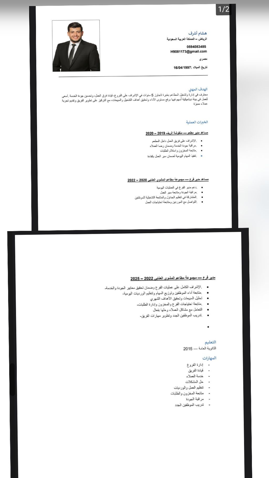 ابحث عن عمل ادارة مطاعم (مدير أو مساعد) عملت في السعودية من (2019 - 2020 مساعد مدير في مطاعم منقوشة الريف) المشوي العنابي من 2020 - 2025. مساعد مدير لمدة ثلاثة سنوات ومدير لمدة سنتين)