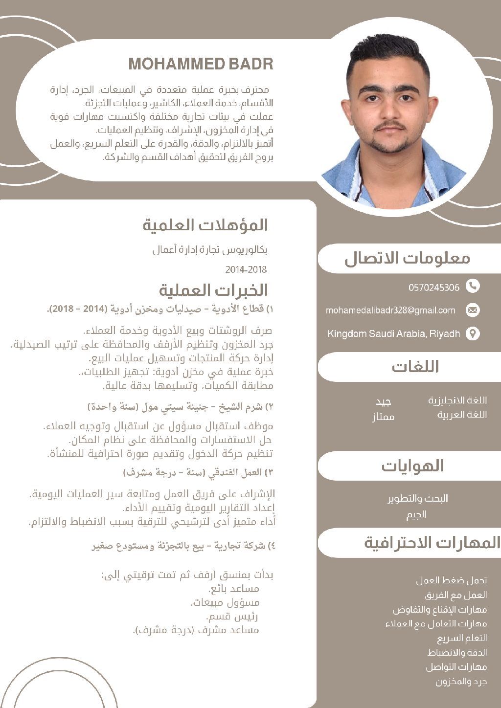 باحث عن عمل - إدارة فرق ومبيعات بكالوريوس تجارة، خبرة كرئيس قسم ومشرف، قيادة فرق وتحقيق أهداف المبيعات بفاعلية. متمرس في التواصل مع العملاء، الاقناع، اغلاق الصفقات، وحل المشكلات. ملتزم، منظم، سريع التعلم، جاهز للعمل فورا داخل السعودية وزيادة الايرادات وتحقيق نتائج ملموسة