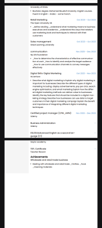 أنا جزائري أريد وظيفة مبيعات في السعودية مع العلم عندي أكثر من 10 سنوات في مجال المبيعات الجملة والتجزئة. عندي شهادات متعددة في مجال المبيعات والتسويق أكملت دراستي الجامعية أتكلم الانجليزية بطلاقة