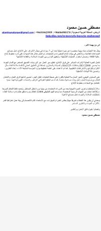 مشرف انتاج أول تمتد الخبرة في 7 سنوات في الاشراف على خطوط الانتاج والحفاظ على سلامة الغذاء وتطبيق نظام الهاسب ونقاط التحكم الحرجة