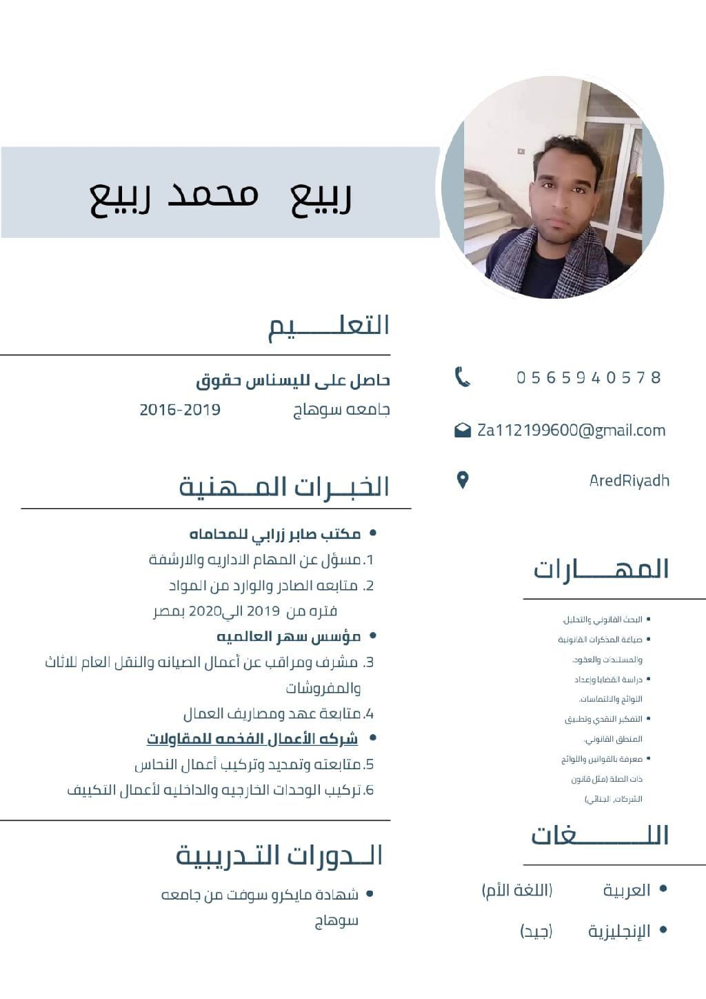 حاصل على ليسناس حقوق وسبق العمل لي في مصر ب المحاماة لمدة عامين. في السعودية بالاشراف والصيانة وتركيب المكيفات والنحاس