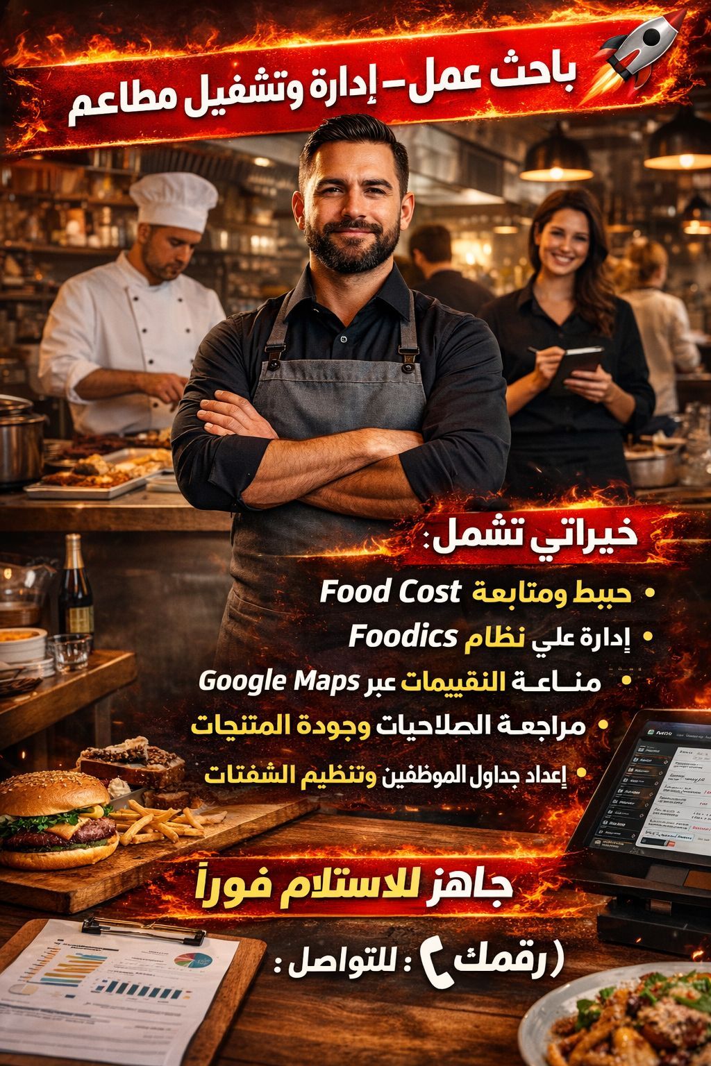 خبرة 6 سنوات داخل السعودية في قيادة وتشغيل المطاعم. عملت في براندات قوية ب لبن - كنافة وبسبوسة - وهمي. ضبط ومتابعة Food Cost العمل على نظام Foodics (فودكس) متابعة التقييمات والرد على العملاء عبر Google Maps المتابعة الدورية ل الصلاحيات وجودة المنتجات عمل الطلبيات ومراجعة المخزون الاشراف على النظافة وتطبيق معايير السلامة الغذائية اعداد جداول الموظفين وتنظيم الشفتات متابعة سير العمل وضمان انضباط