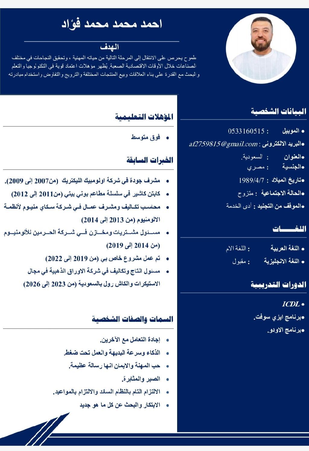 أقدر اعمل تحت ضغط العمل وأقدر أتعامل مع أي شغل اداري جديد أو أمين مستودعات