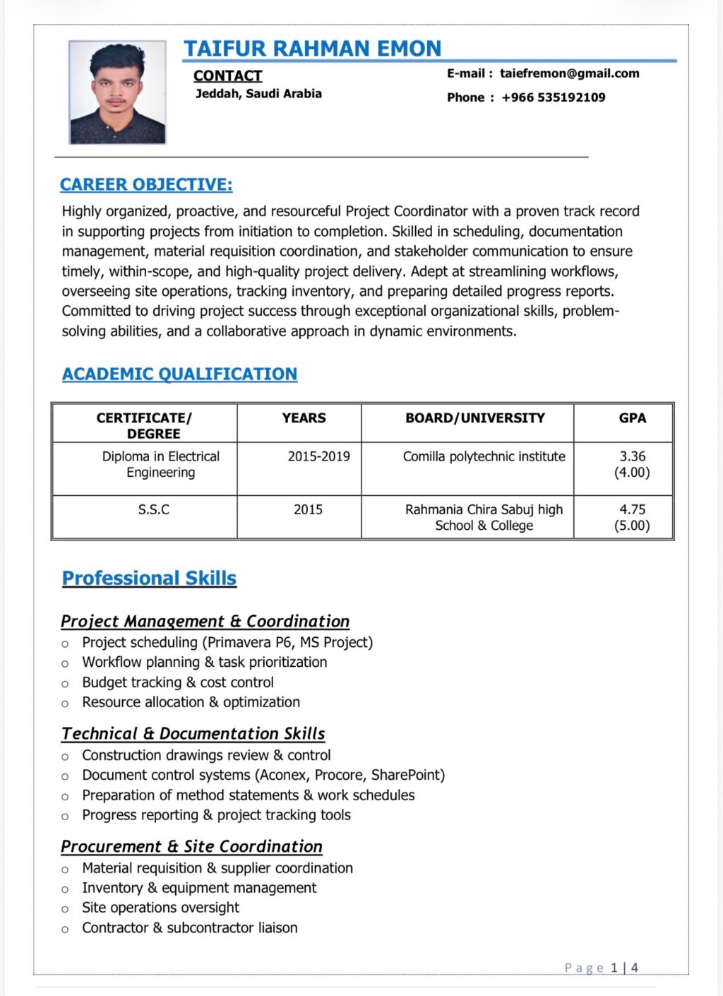 متاح للعمل كمسؤول وثائق منسق مشاريع أي وظيفة ادارية لدي خبرة عملية لمدة 5 سنوات في إدارة الوثائق، تنسيق المشار يع، والدعم الاداري. امتلك خبرة قوية في تنظيم مستندات المشاريع، اعداد التقارير، التنسيق بين الفرق، والحفاظ على سير العمل بطريقة منظمة وفعالة. مهارات قوية في التواصل والتنظيم اجادة إدارة الوثائق واعداد التقارير القدرة على انجاز عدة مهام بكفاءة جاهز للانضمام فورا حاليا ابحث عن فرصة مناسبة