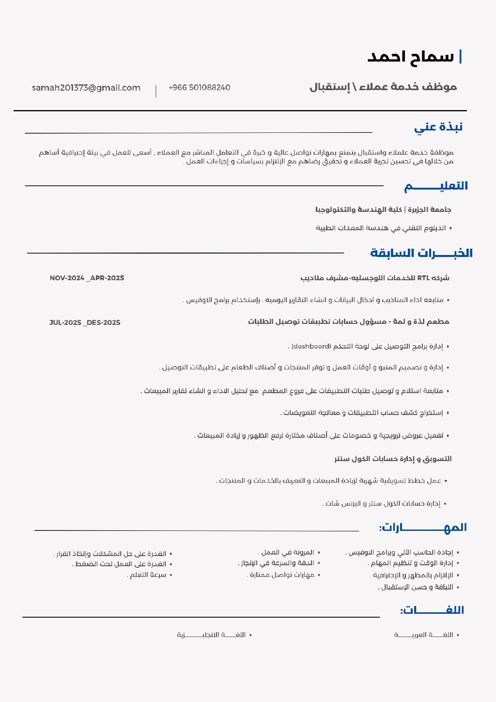 خبرة في إدارة حسابات تطبيقات التوصيل الخاصه بالمطاعم (هنجرستيشن، كيتا، جاهز، ذا شفز، نينجا) متابعة الطلبات والخصومات الخاصة بالمتجر وساعات العمل وإدارة المنيو وتوفر المنتجات