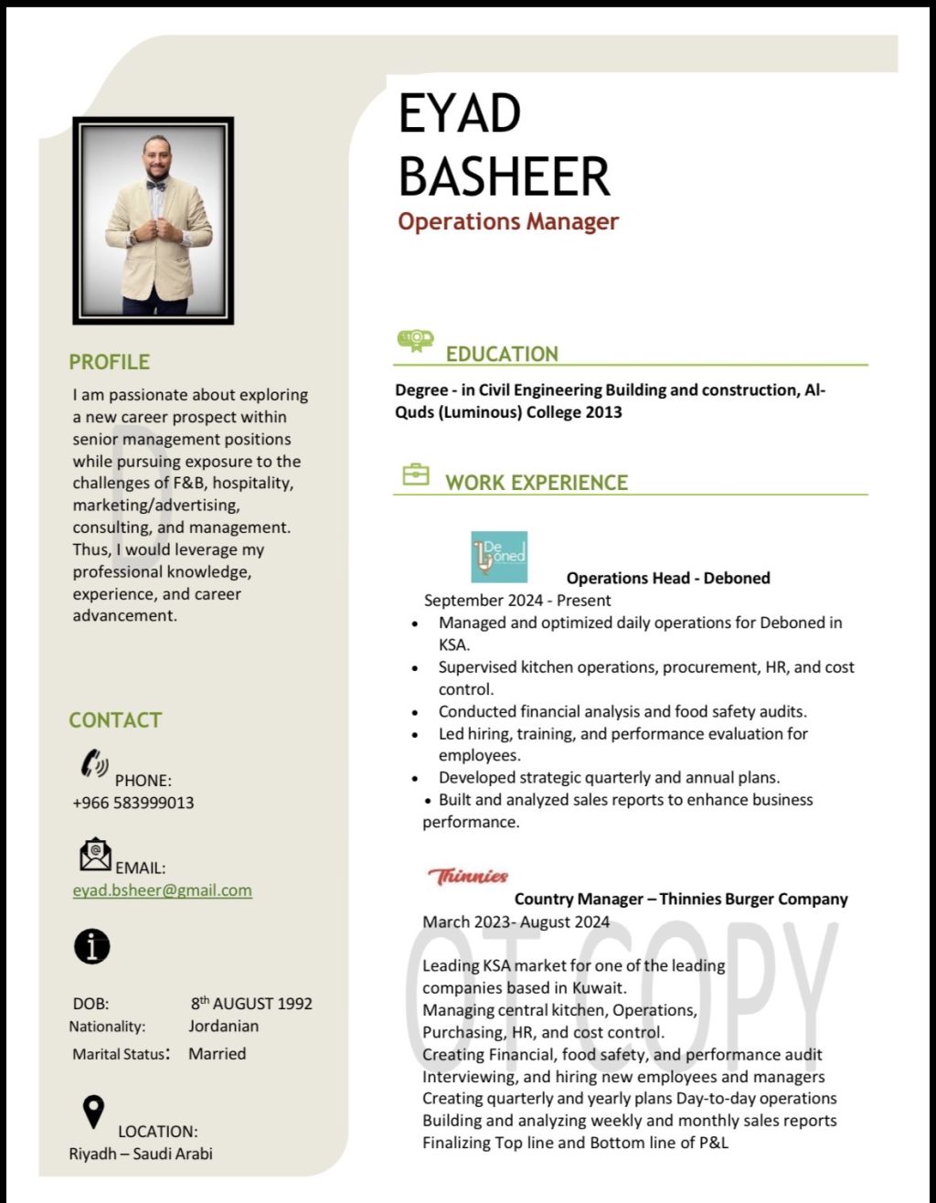 مدير تشغيل مطاعم وكافيهات. خبير في مجال الأغذية والمشروبات وقائد استراتيجي بناء أنظمة هيكلية وتوسيع نطاق أعمال المطاعم
