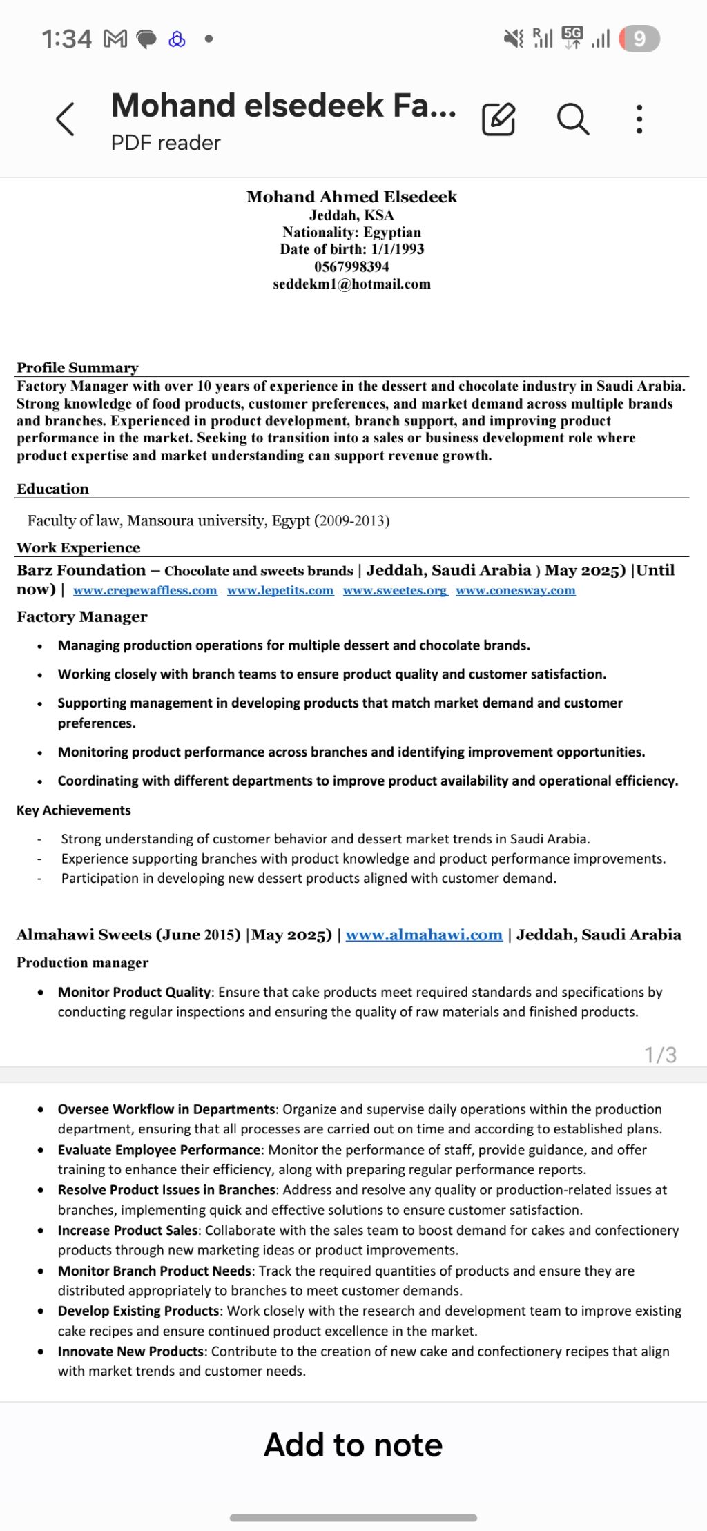 مهند، مدير مصنع تشغيلي متخصص في مجال الحلويات والشوكولاته بخبرة أكثر من 10 سنوات داخل السعودية. عملت على عدة براندات مثل حلويات الم هاوي لمدة 10 سنوات كريب ووافيل سويتس كونز واي تيفاني بوكس لو بيتيت شوكليت أتطلع لفرصة مناسبة