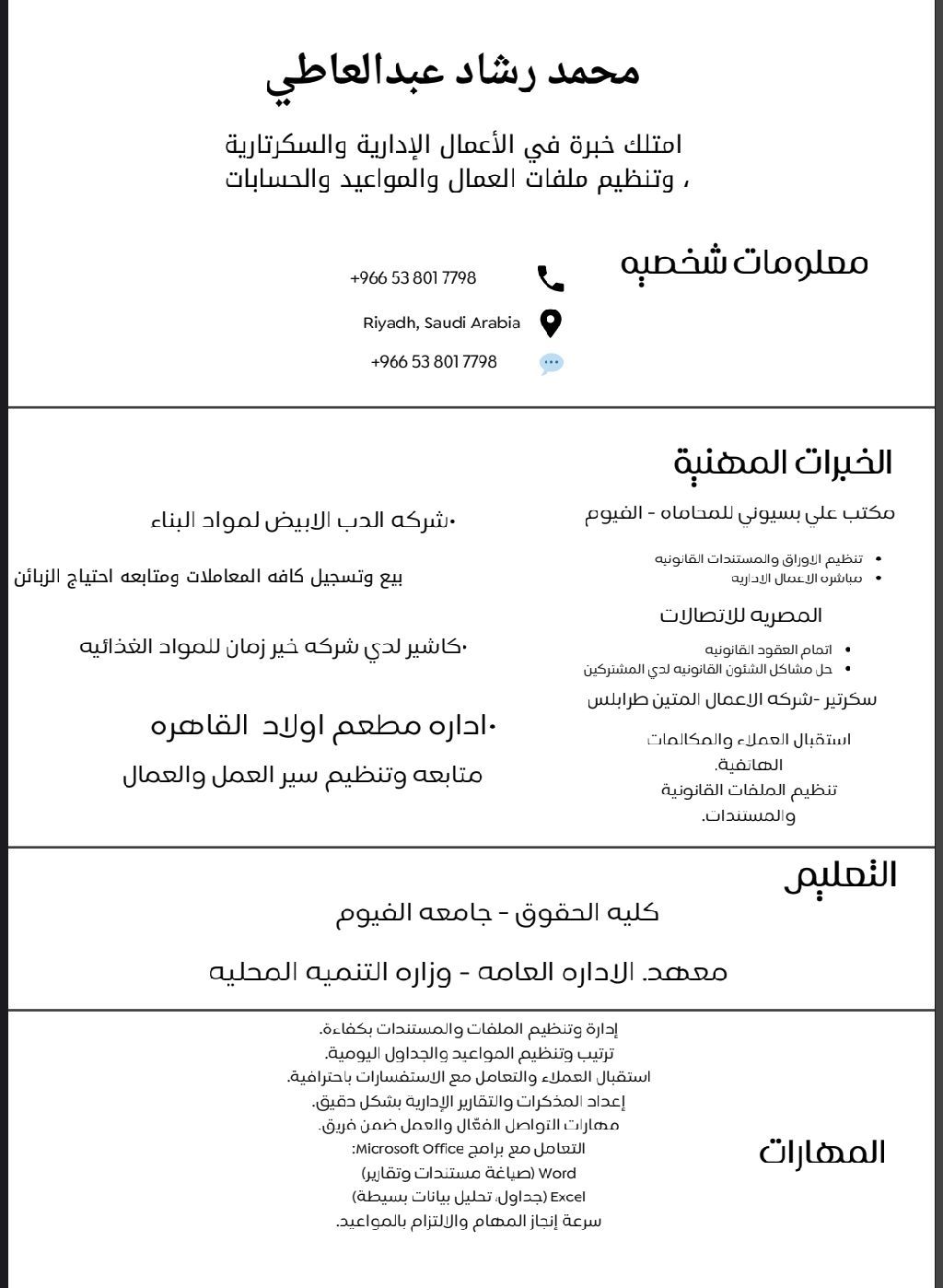البحث عن عمل داخل المملكة الرياض أعمال اداريه وسكرتارية قانونية أو أي عمل اداري