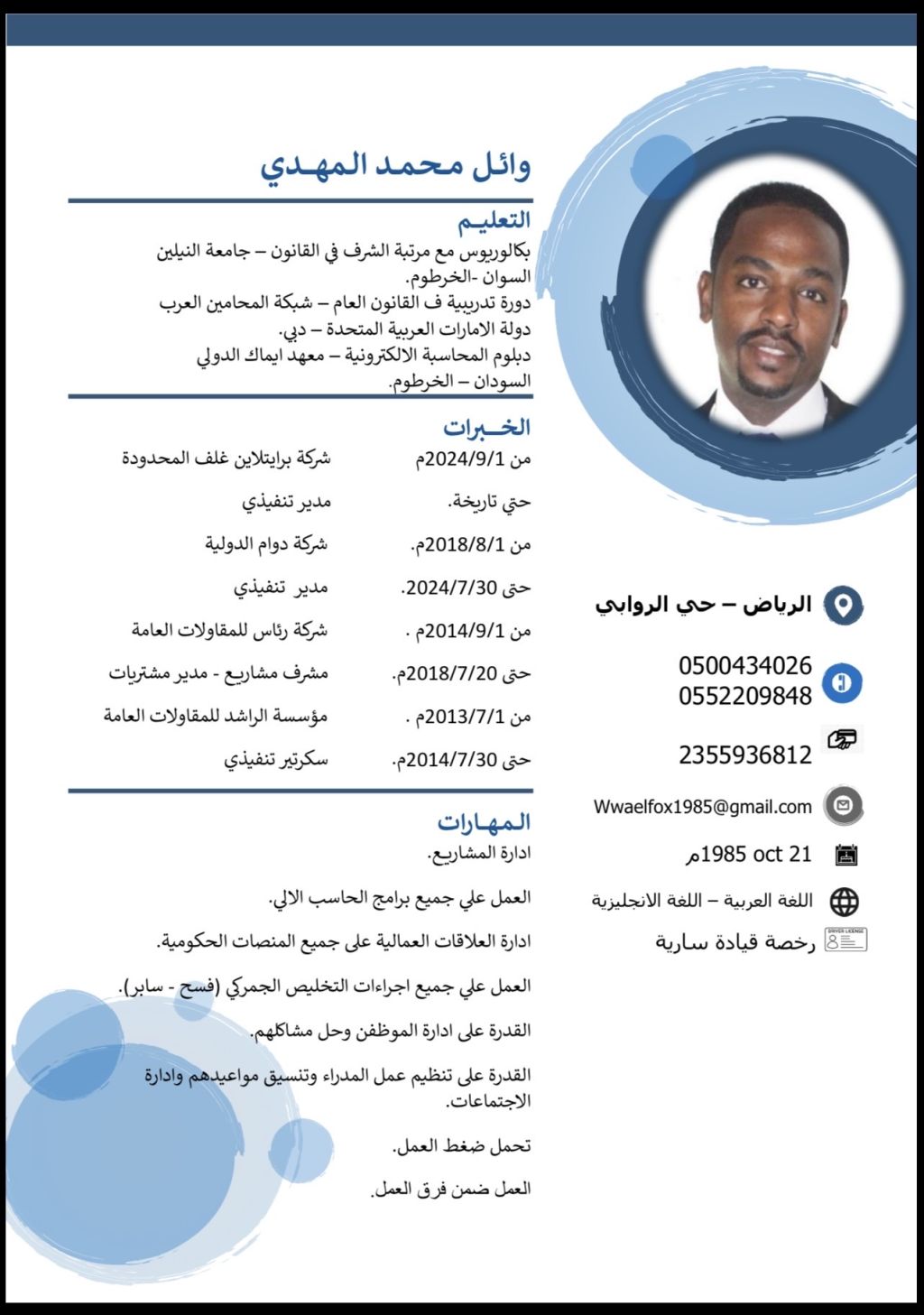 سوداني خريج بكالويوس قانون ابحث عن عمل بوظيفة مساعد اداري أو سكرتير تنفيذي أو سكرتير محامي ملم بالأعمال الادارية في الرياض يتوفر رخصة قيادة وسيارة