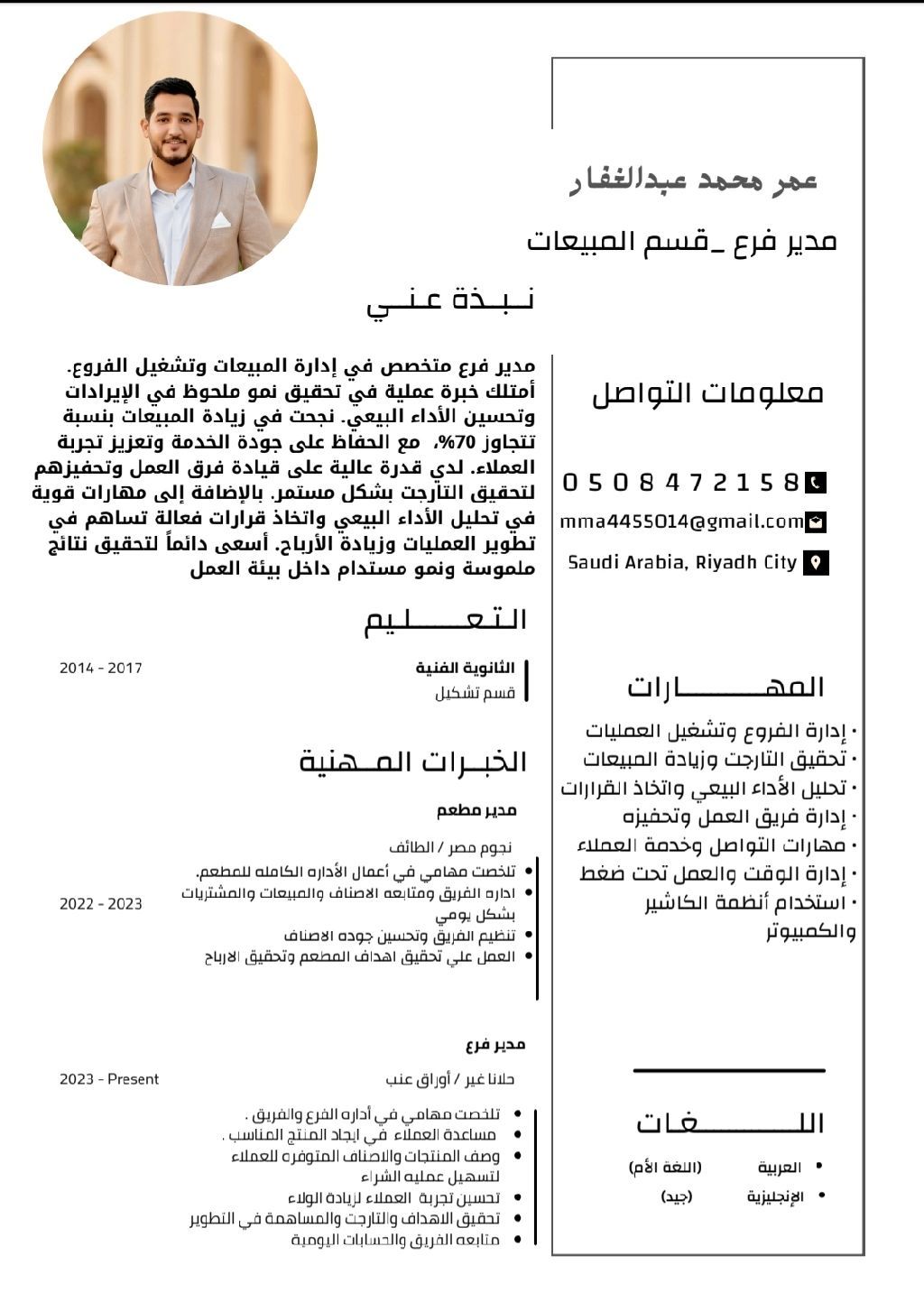 ابحث عن وظيفة مناسبة اعمل مدير فرع والمبيعات. لدي خبرة في ادارة الفروع والأفراد. وأيضا الكاشير كما موضح بال CV