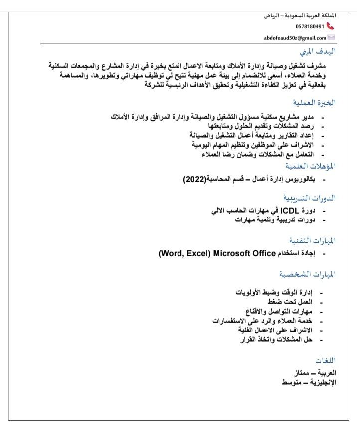ابحث عن عمل مشرف تشغيل وصيانة وادارة مرافق