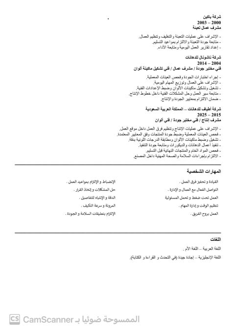 ابحث عن وظيفة خبرة مشرف عمال صيانة ونظافة 7 سنوات فني جودة مصنع دهانات 9 سنوات مشرف عمال مصنع دهانات 5 سنوات