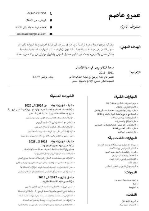 I am an Egyptian national, distinguished in managing restaurants and cafés. I have a 5 - year experience certificate in management, a specialized course in customer service excellence, and a transferable residency valid for 15 months. I also have extensive experience in controlling restaurant and café costs, as well as solid knowledge of the BNDL system