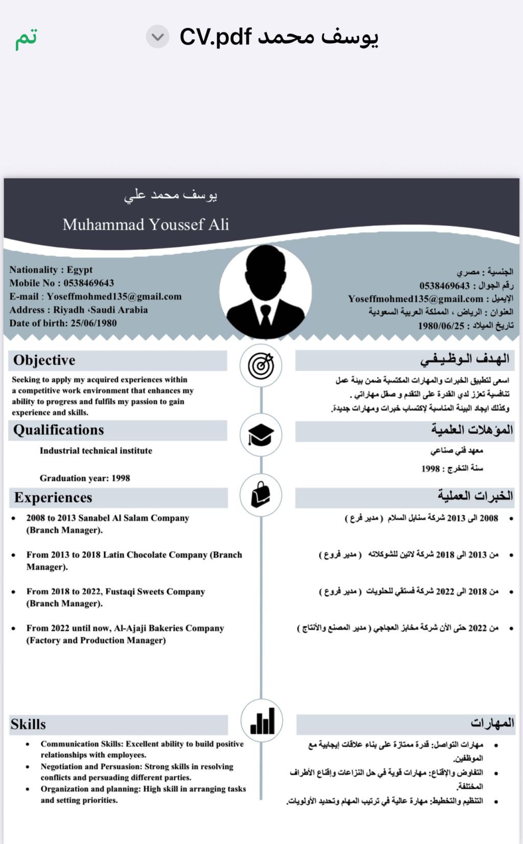 عملت مدير فروع بشركتي لتين للشوكولا وشركة فستقي للحلويات الشرقية وأيضا مدير تشغيل لشركة مخابز ألعجاجي. خبرة بمجال الحلويات والشوكولا أكثر من 15 عام