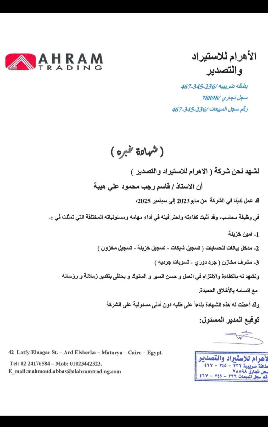 امتلك خبرة عملية تمتد لثلاث سنوات في مجال إدارة المخازن وتنظيم المستودعات. خلال مسيرتي العملية قمت بمتابعة عمليات الاستلام والتسليم، وتنظيم المخزون باستخدام أنظمة حديثة مثل Excel وERP، بالاضافة الى اعداد تقارير دقيقة عن حركة المخزون والجرد والاشراف على العمال وتوزيع المهام داخل المخزن مع الالتزام التام باجراءات السلامة والجودة. أتميز بالدقة في التفاصيل، والقدرة على العمل تحت الضغط