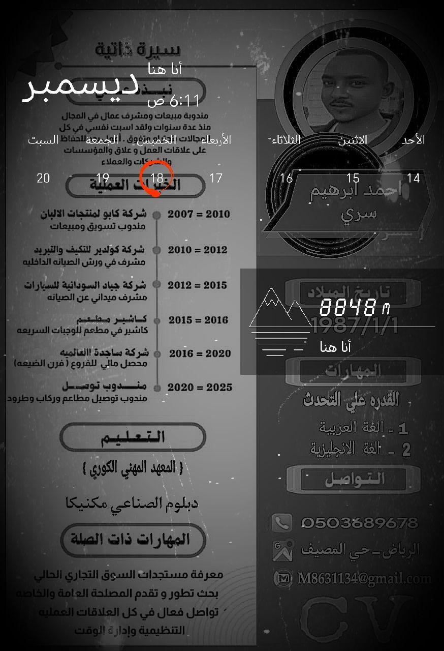 Name Ahmed Abra Yam/ To whom It May Concern/ Job Title Supervisor I am a Sudanese resident in Riyadh, I am looking for a job and I have experience in the field of logistics and I have been working as a supervisor for more than 5 years, and I can bring deputies and I have relationships with many warehouses Email, SMSA, Amazon, Landmark, Anywhere, Ataq. Contact Ahmed