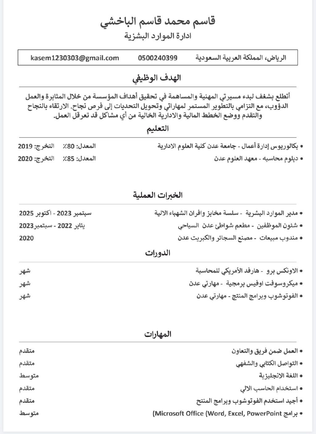 Yemeni national seeking employment as a sales representative, cashier, or marketing representative. Four years of experience and expertise in various fields, including human resources, personnel affairs, accounting, and purchasing. Highly skilled in developing and implementing effective work plans, free from any problems that might hinder workflow, and capable of handling work pressure